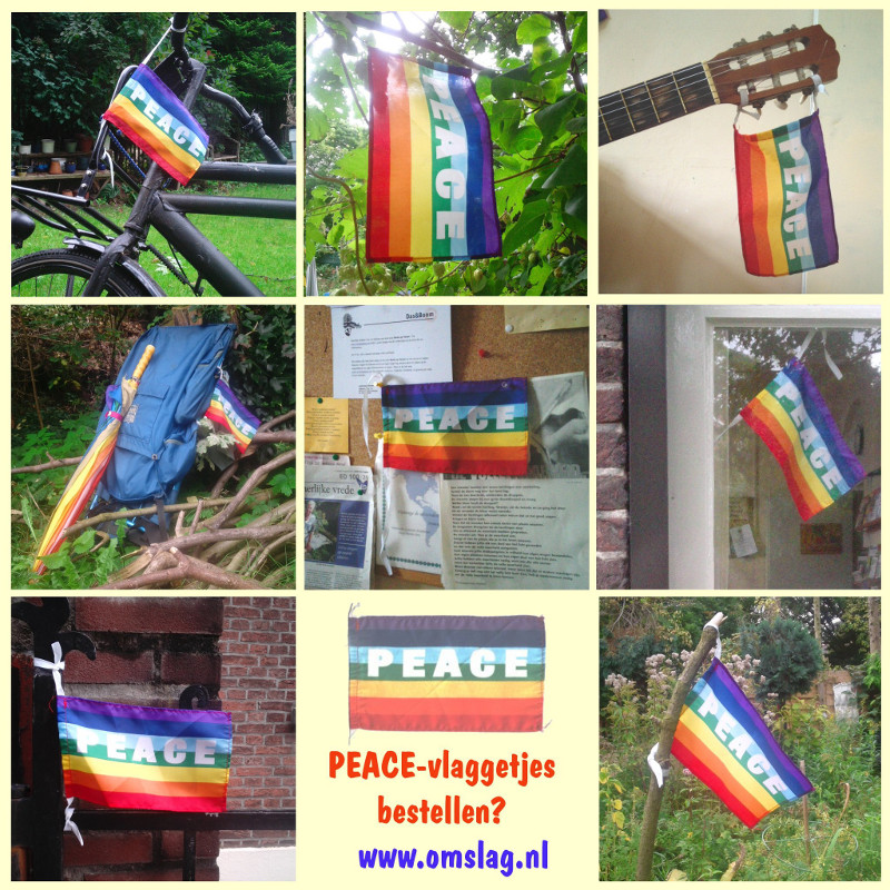 Er zijn weer vlaggen! Omslag betrekt de vlaggen van de Vlaamse organisatie Tumult. Daar waren de vlaggen tijdelijk niet leverbaar, waardoor Omslag de vlaggen ook niet meer had. Maar nu is er weer voorraad. De mensen die de afgelopen tijd een vlag bij Omslag bestelden, vinden die dezer dagen in de brievenbus. De vredesvlag wappert elk jaar op de dag van Vrede, 21 september. Sommigen hangen de vlag ook uit op 5 mei. En er zijn ook mensen die de vredesvlag het hele jaar buiten hangen. Naast de grote vlaggen zijn er ook fietsvlaggetjes verkrijgbaar, die ook bijvoorbeeld aan een rugzak gehangen kunnen worden. Een vlag bestellen? Dat kan!