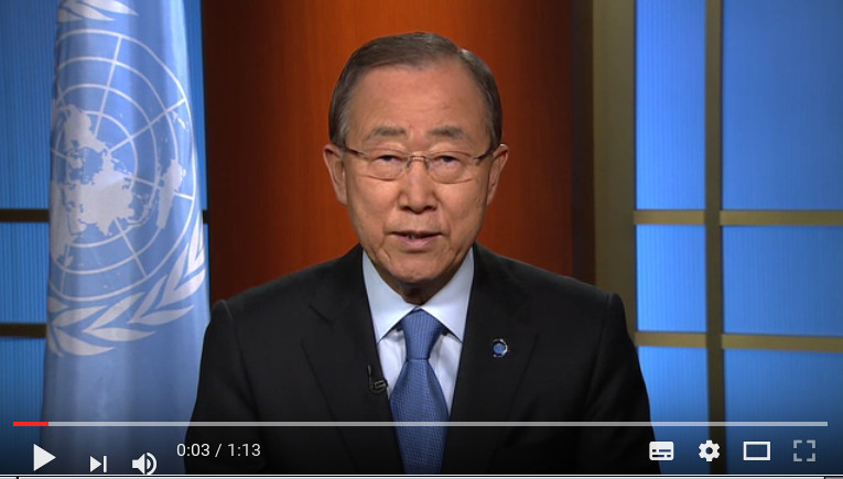 De oproep van Ban Ki-moon is te beluisteren via YouTube. De volledige tekst van de boodschap: