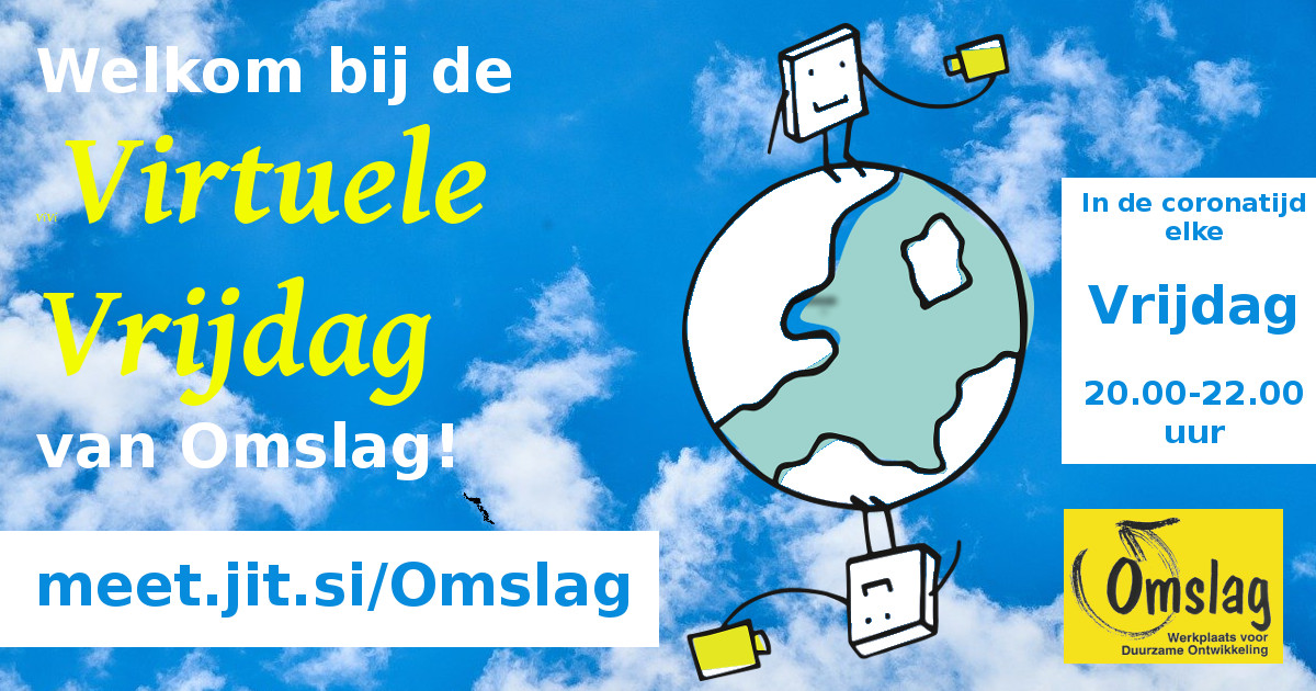 Wie technische problemen ondervindt met bovenstaande link, heeft een alternatief: de ontmoeting wordt ook uitgezonden via een livestream op Youtube, Hier kan iedereen meekijken en meeluisteren, maar niets terugzeggen. De livestream is ook weer een experiment, we hopen vurig dat het goed gaat. Alle links zijn te vinden op de voorpagina van www.omslag.nl Nu in deze cornotijd alle activiteiten stilliggen, is de Virtuele Vrijdag een manier om met elkaar in contact te blijven.