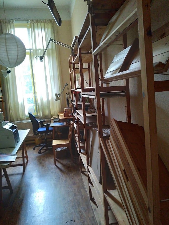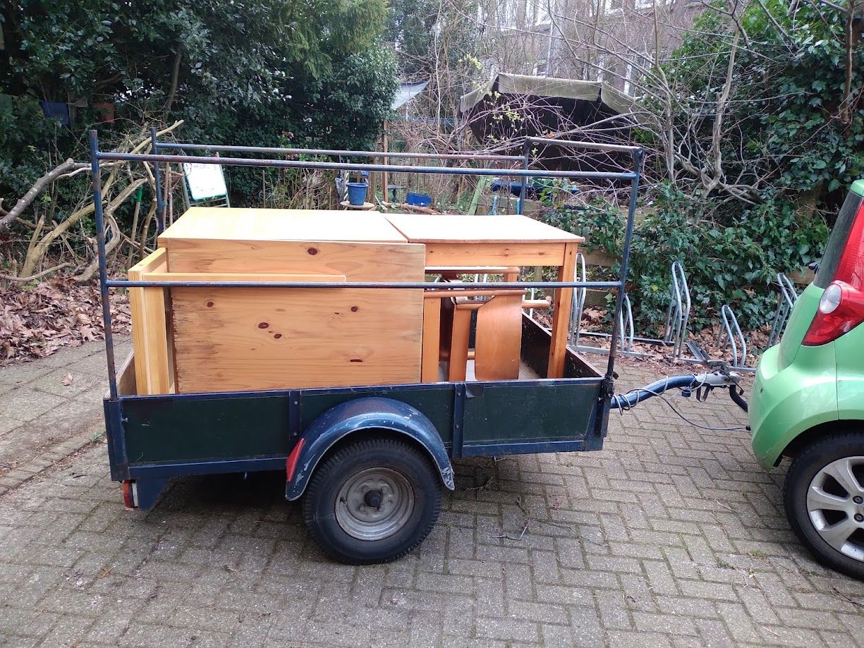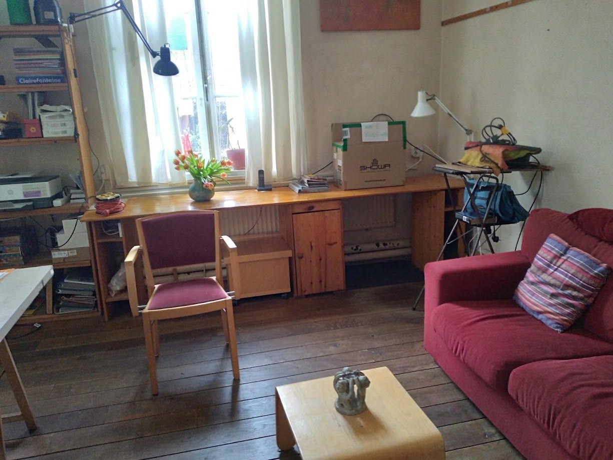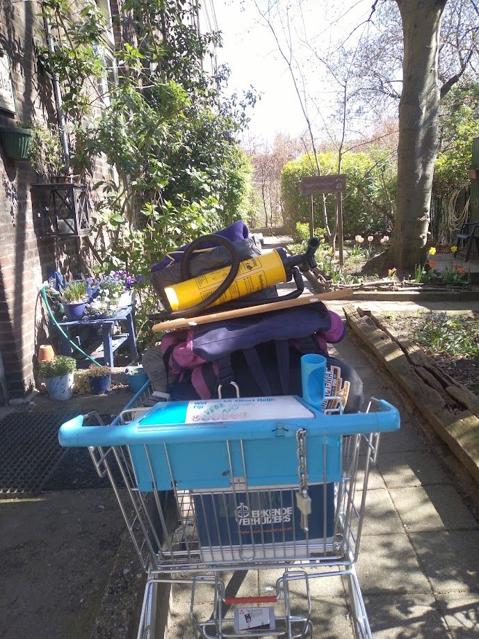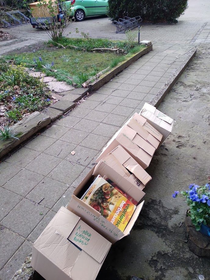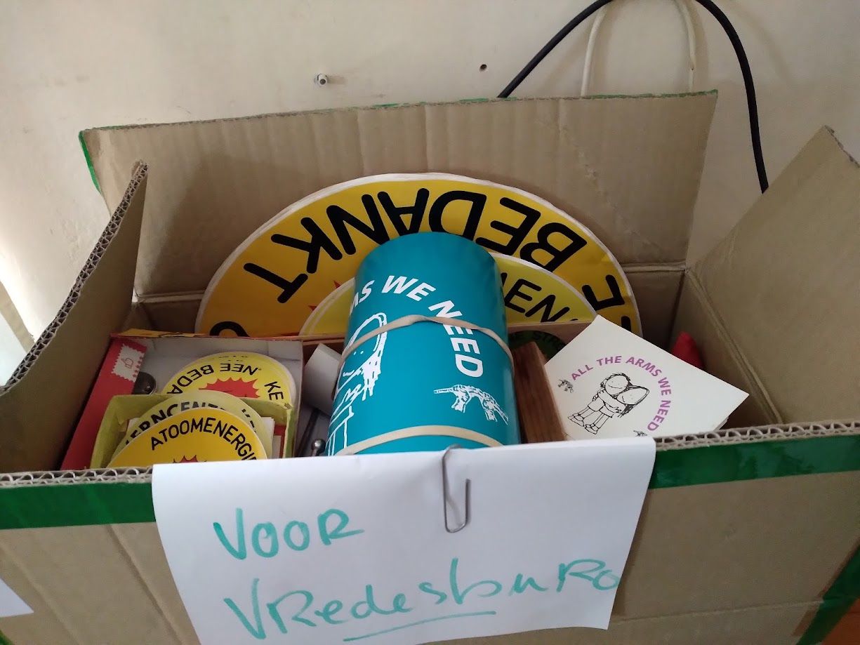in de papiercontainer. Veel inventaris en de hele Omslag-bibliotheek verhuizen naar Strohplatz. Daarnaast gaat er allerlei materiaal en heel veel spullen naar verwante projecten (Vredesburo, Longomaï) en naar onze naaste buren: de woonwerkgemeenschap/kringloopwinjkel van Emmaus Eindhoven.