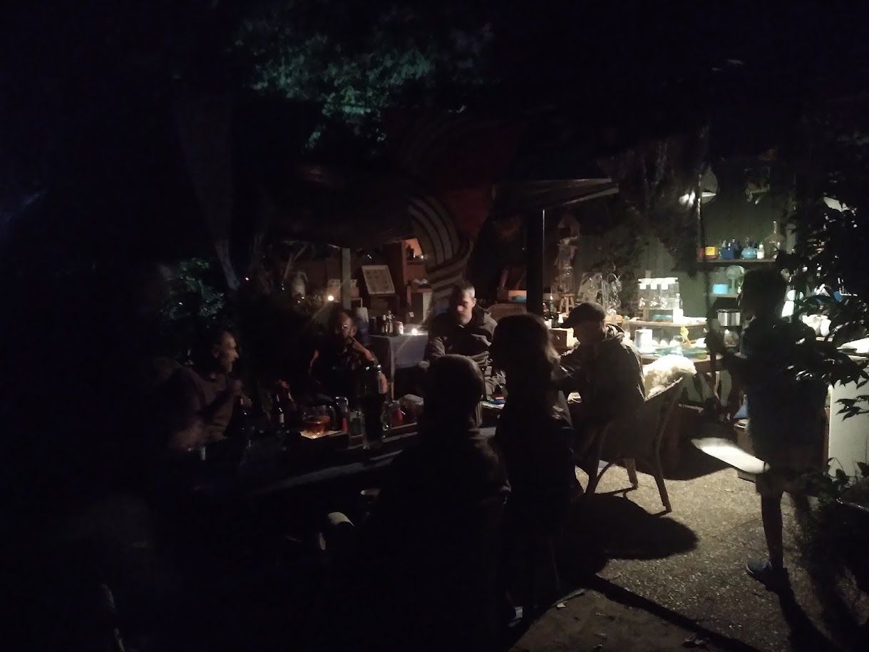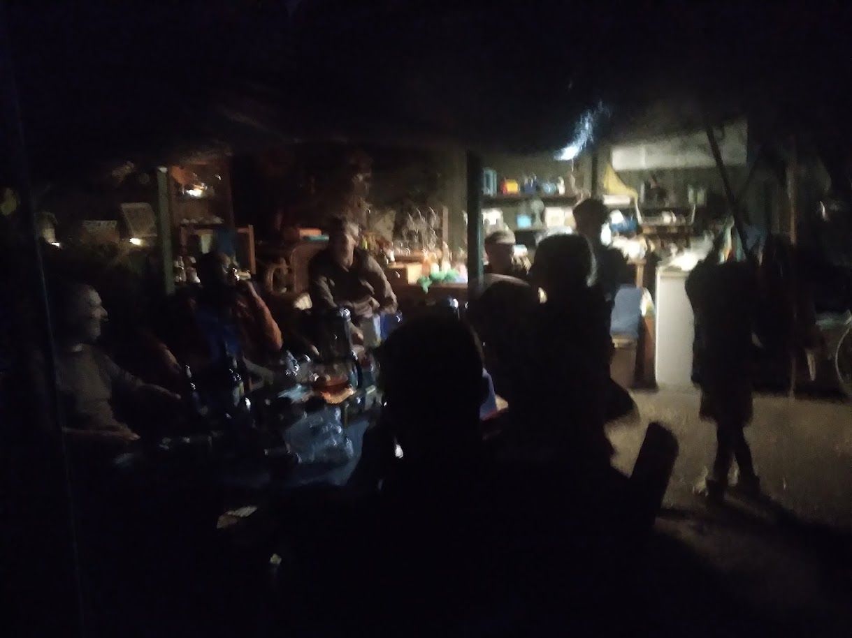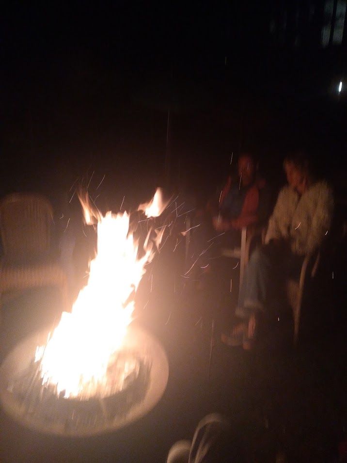 te regenen, maar het vuur kon blijven branden. Terwijl een groepje zich binnen over de afwas